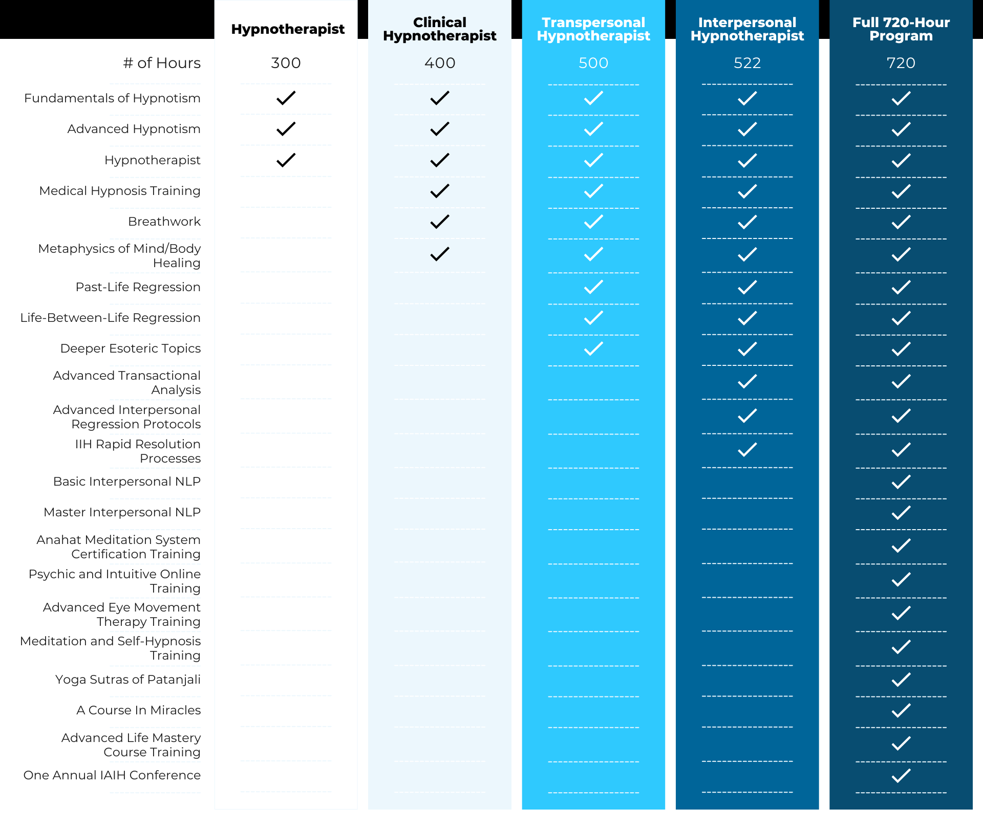 Choose this option if you have completed the 522-hour Interpersonal Hypnotherapist Program.